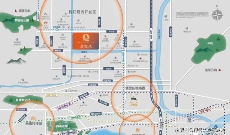 接着便是 上塘高架与仁和大道组成的“两纵”,连接杭州南北,从启航城出发,走杭州中轴线上塘高架,一路便可直达市中心。