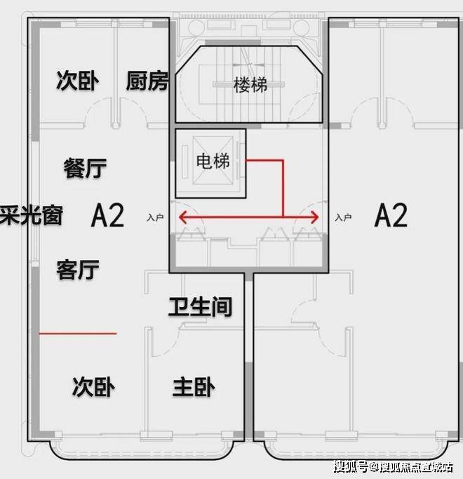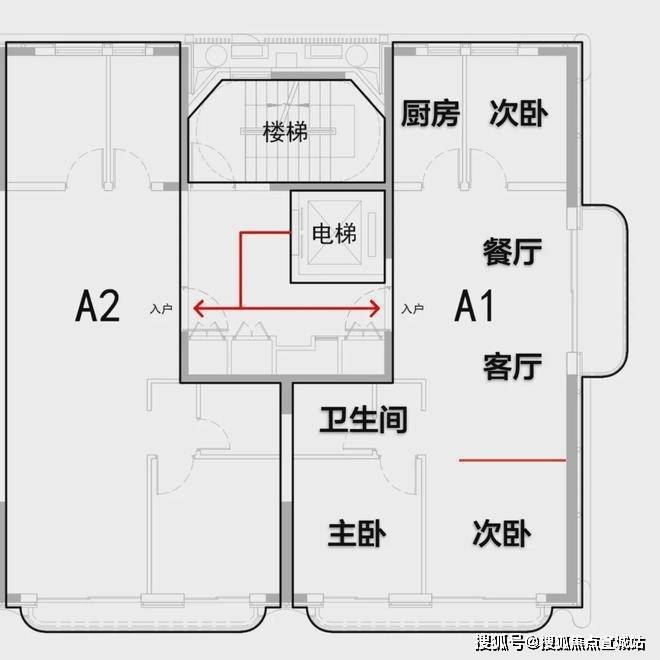 我画了一个示意图,右边这个A1的边套,是不是就是目前市面上非常常见的边套横厅设计,客餐厅大约有6米面宽,比市面上100平的5.2米要更实用,也更阔绰.