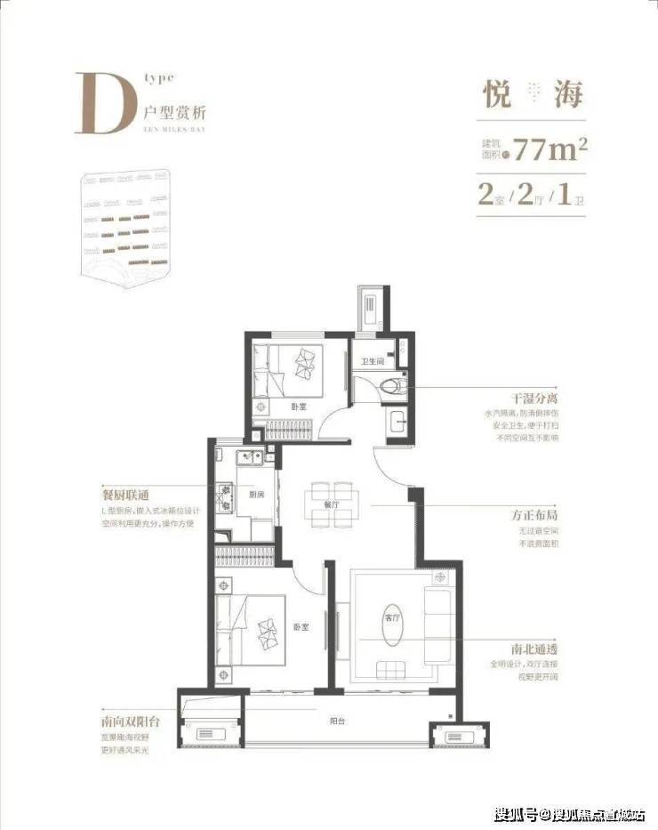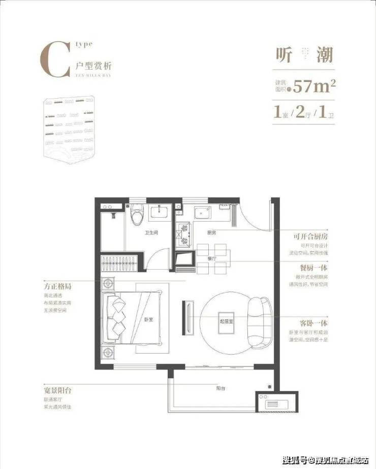 建面约57㎡1房、77㎡2房、100㎡3房
