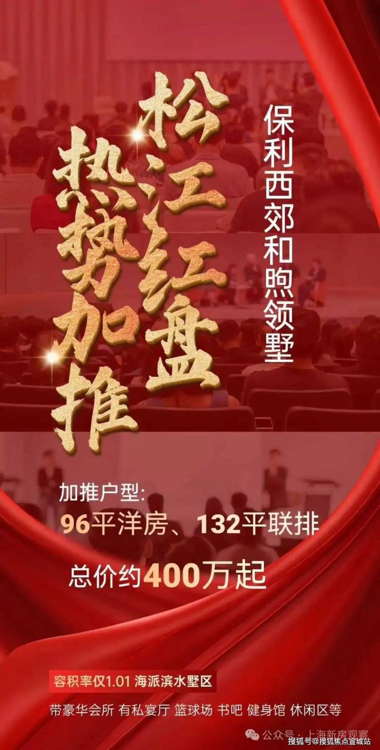 最新消息!G60开创封面,3大TOD环绕,12号线旁轨交旁约1.01臻稀低密墅种,海派下沉式滨水会所「保利西郊和煦·领墅」项目此次二批次加推户型96平三房两厅两卫,总价约380-450万,联排别墅132平900-1000万;均价5.63万/m²!认购金40万;认购时间:8月16日-8月20日;售楼处线上火热预约中!