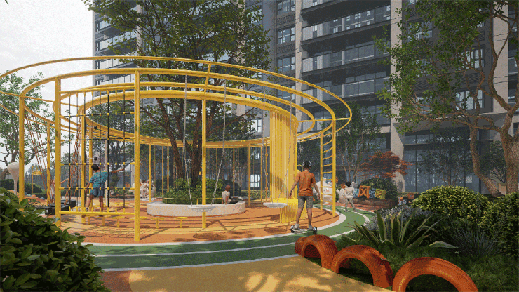 阳光澜庭规划集探险、科普、锻炼、玩乐于一体的儿童游乐营地,迷你跑道、童玩构架、滑梯景墙等等,让孩子在无界探索中,萌发认知世界的原生活力。