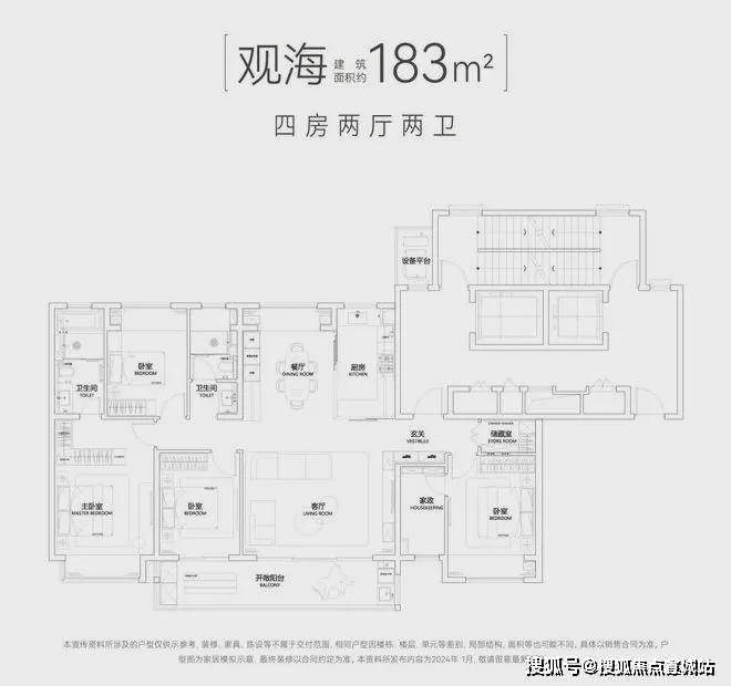 狮山云起打造建面约153/183/198/223㎡四个户型,均为四房设计。