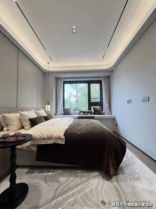 主卧转角落地窗+飘窗,也算是非常少见的了。中環置地中心·望雲售楼处电话:400/8862/334【预约☎】净面宽约3.6m,不算进门的衣柜,进深大约5.7m左右。根据测算,可以放置宽约2m的床+2个床头柜(宽度约45cm/个)是可以的。