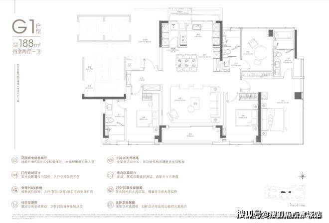 188户型2梯2户,有独立的电梯厅。中環置地中心·望雲售楼处电话:400/8862/334【预约☎】4房3卫设计,还是3明卫,这两点还是不错的。