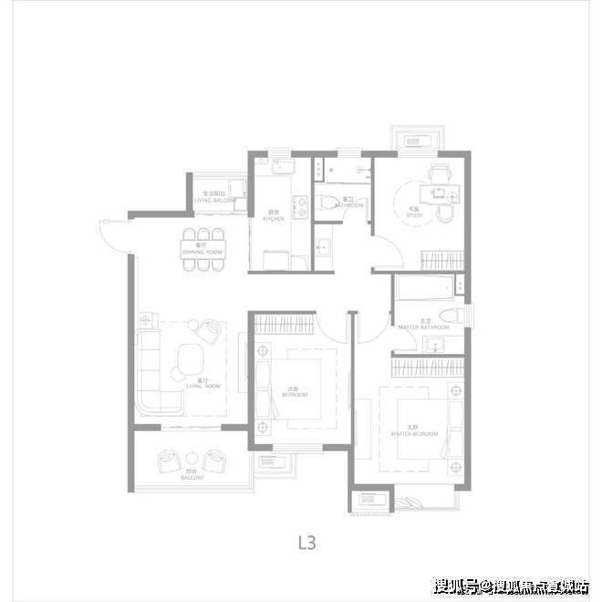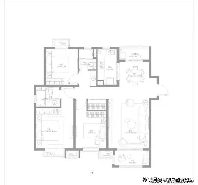 建面约116㎡三房两厅两卫,南北通透,户型方正,主卧大套房,带阳台与独立主卫,更舒适的居住尺度.