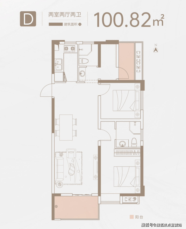 户型设计紧凑、格局方正,最大的特点就是三个开间朝南,主卧、次卧、客厅朝南,客厅外超大阳台,主卧室人性化飘窗设计,可以尽享阳光的滋润。