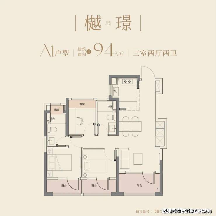 建面约94㎡户型,即做到了三阳台的配置,方正户型格局,大开间尺度,全室飘窗设计,可做多元改造,如储物空间或拓展室内面积,为生活打开更多想象空间。