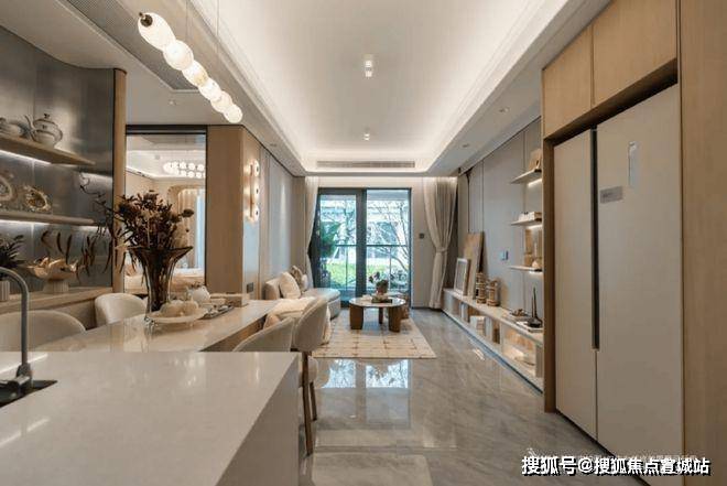 建面约99㎡的边套户型采用大横厅的设计,3+1开间朝南的设计,让这个户型的南向采光面以及尺度感变得十分惊人。