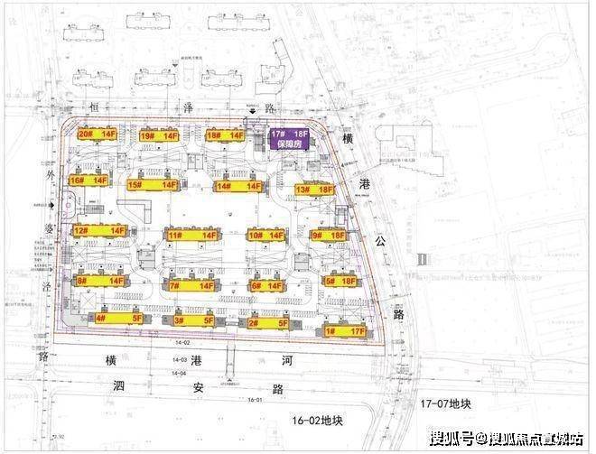 17-07地块:占地面积约2.76万方,总建筑面积约10.96万方,容积率2.5,拟建6栋18F高层住宅、1栋18F保障房、1栋14F酒店、3栋2-3F商业以及若干配套用房!