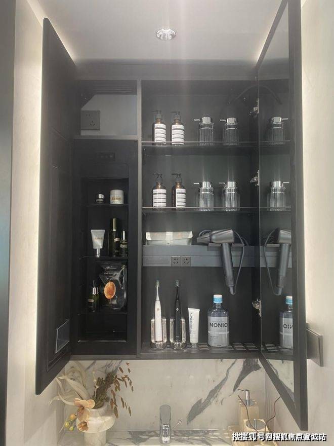 卫浴双智能马桶(2卫户型),让生活智享洁净;主卫美妆冰箱,更为爱美的女主人带来精致体验;而玄关入口处精致的花纹、质感的背景墙、优雅的弧形吊顶、典雅的人字拼地板……无一不彰显着惬意质感。