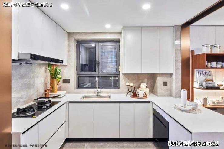 其次,厨房也配齐了品牌燃气灶/油烟机/橱柜三件套,增配洗碗机,再加上单体大水槽、抽拉式水龙头、金属玻璃门,在单价3万级的楼盘中属实难得。