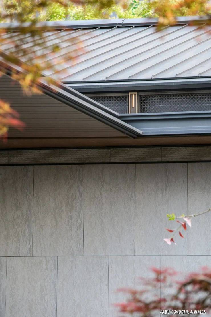 在设计之中,我们追求室内层高的宽阔与通透,又兼顾庭院连廊的尺度与韵律。于是,考虑人在山水隐园行走视野,园内设计15°坡屋顶,巧妙平衡立面、室内与园林之间的需求,三者和谐共生,宛如一幅流动的山水画卷。