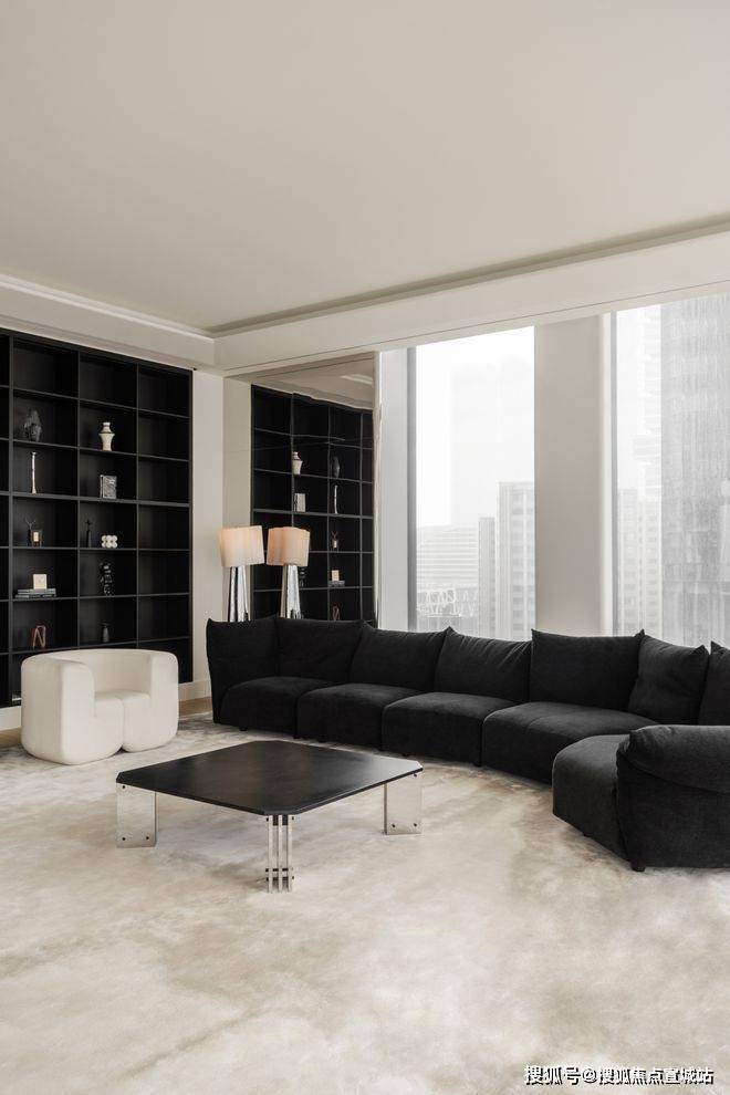 从材质方面,空间装饰十分丰富,留白和黑色的典雅作为核心,加入不同的金属、皮革和布艺,空间更加圆满,生活也随之更包容。