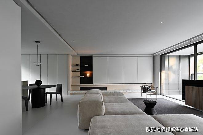 客厅外部带有一座阳台,源源不断地向室内输送清风、暖阳,外界的气息与家的静好氛围亲密交融,空间的流通性进而变得更强。谁说极简空间注定一成不变?心性活络,生活当然会更加有趣。
