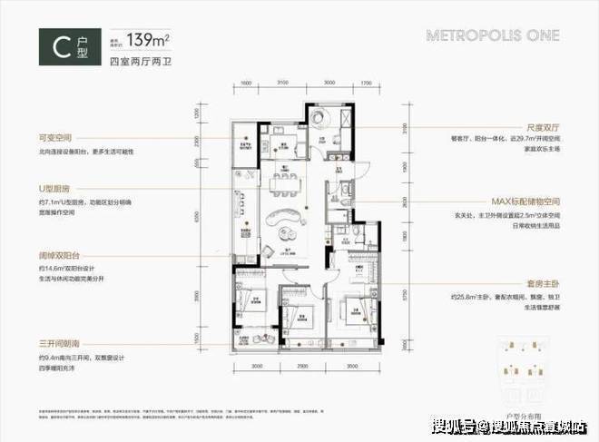 杭州珑望奥城售楼处电话☎:400-8828-814(预约看房热线)约172平方米的户型体现了生活的极致表达,其配备宽敞的大厅和跑道式阳台,四开间朝南和双套房的豪华设置使其在同类户型中突出。特别是厨房靠近客厅一侧的餐厅布局,使厨房成为家庭生活和社交的中心。