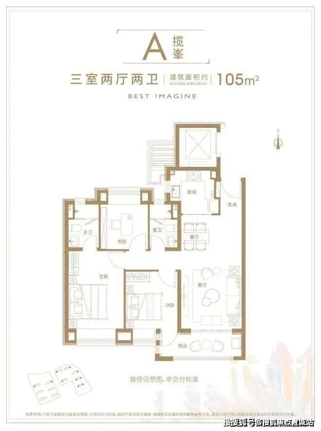 首先,3房2厅2卫的户型结构,保证了从二人世界到三胎家庭的全生命周期需求。