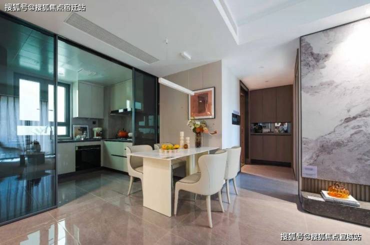 餐客公共空间由经典竖厅创新演变为“横向宽厅”,大开间短进深,扩大视觉观感,增加采光面,营造温暖舒适的家庭空间;家庭成员可处于同一场域,实现更多情感互动,陪伴交流。