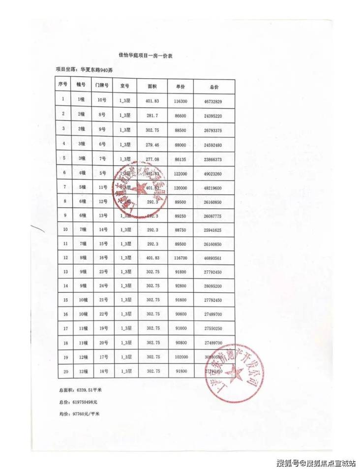 一房一价表