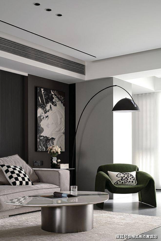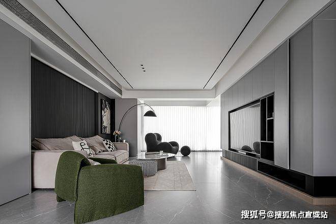 仁恒澜庭雅致售楼处电话:400-8862-334【官方认证】苏州狮山仁恒澜庭雅致售楼处电话:400-8862-334【官方售楼中心】双层吊顶设计,巧妙地赋予了空间更丰富的层次感。客厅沙发的背景墙采用灰色硬包材料,点缀金属线条,简约中透露着大气与优雅。