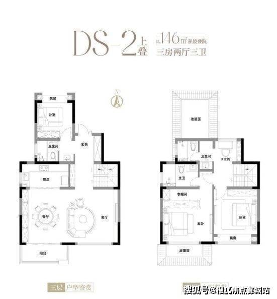 约146平三房上叠,同样拥有大横厅设计,附赠约25平阁楼,独享宽景露台。上呈斑斓星空,下接四季景致,成就闲适雅致的空中客厅。