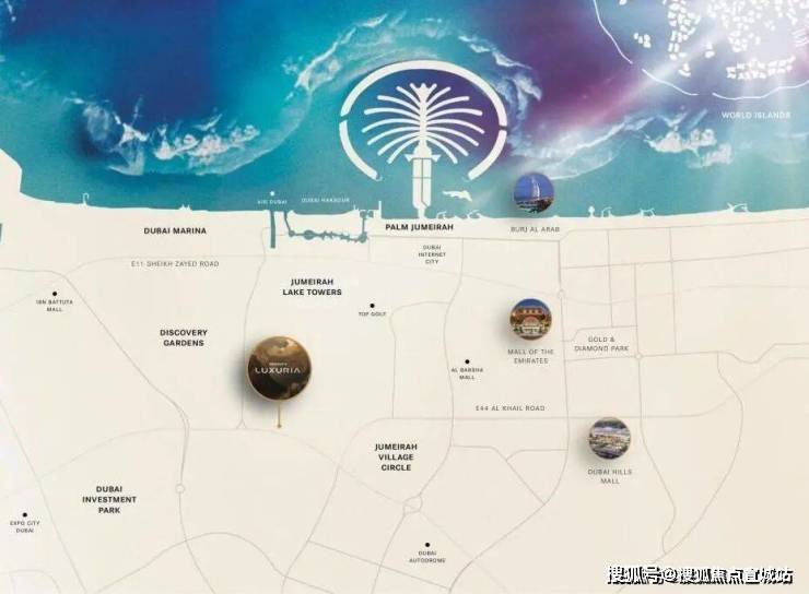 核心交通:紧邻穆罕默德·本·扎耶德路(E311)与阿尔卡伊尔路(E44)两条主干道,轻松畅达迪拜各主要区域;距离马克图姆国际机场仅20分钟车程,9-10分钟可达Marina游艇港、六国购物中心、伊本·白图泰购物中心,12-15分钟可达朱美拉棕榈岛、迪拜山庄购物中心,25分钟可达迪拜市中心,出行便捷高效。