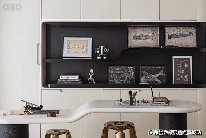 Theintegrationofinteriordesignandarchitecturalaestheticsrevealsthedelicatespatialstructureinthespace.Theaircrafthazemaponthenicheandtheaircraftmodelonthetableseemtobemoreabletofeeltheinfinitedreamsinthespace.