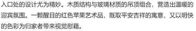 约9米超高挑空大堂:会客休息区分立礼宾台两侧,艺术作品萦绕四周,使每个置身于此的人都能拥有酒店级的尊贵感受;公区集合多位艺术家为TODTOWN天荟|悦麟度身创作的多维艺术品,包括环境音乐、环境香氛、雕塑、油画等,前卫的设计感和高品质的呈现力,营造出多重感官享受的艺术享受。