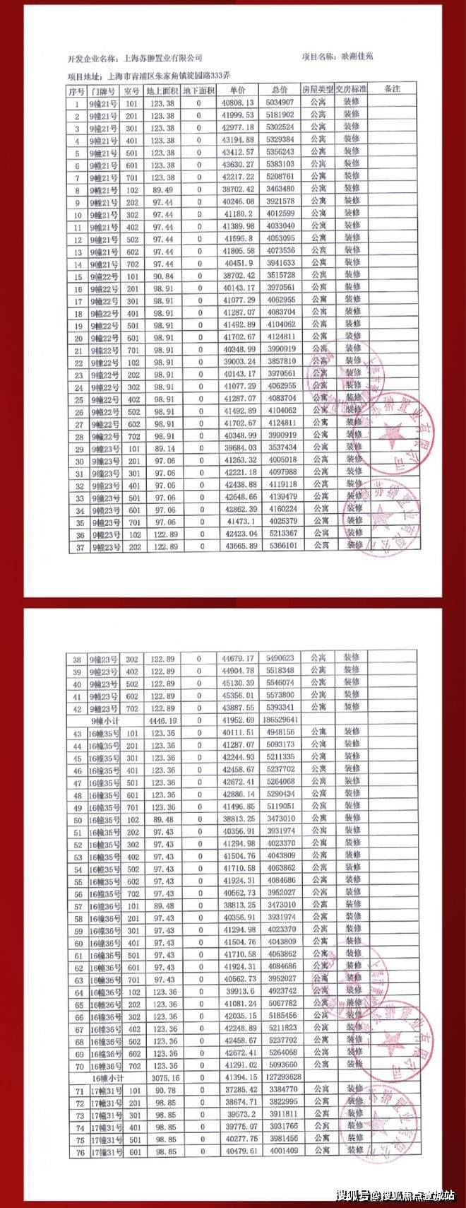 【大名城·映玥】一房一价表▼