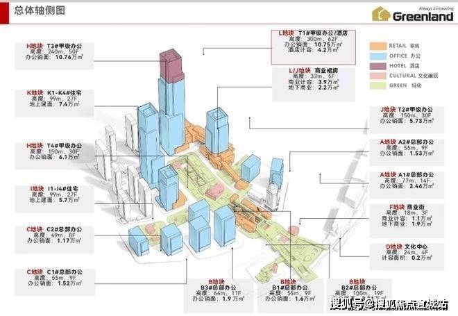 其中4栋超高层,分别为300米、240米以及2栋150米塔楼组成.