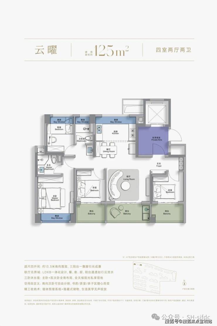 ▷建面约125㎡4房2卫:新政后松江板块首个四开间朝南三阳台户型,采光通风与空间延展兼备;类一梯一户设计,独享梯厅,集收纳、私密、仪式感于一体。是新规后松江首个3米层高产品!入户门,采用高端定制铸铝装甲门。而且本户型是双玄关收纳,满足日常收纳需求,实用性拉满。南次卧拥有独立阳台,且此阳台隔断墙为非承重墙,可进行灵活改造。可以做到3房或者4房的随意切换,保证实用性的同时,更具灵活性。