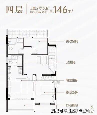 三、空间革命,146㎡叠墅演绎极致生活美学【下叠·庭院时光】146㎡阔境空间,7米面宽南向双开间(3.9m+3m),三房两厅三卫设计,两房朝南沐浴充足阳光。约16.2㎡私家庭院,可植竹养荷,亦可品茗会友,让自然与建筑共生共荣。【上叠·星空之境】同面积段上叠产品,以双层空间重构垂直生活美学。7米面宽配合全景落地窗,将周庄的晨昏四季尽收眼底。三卫设计实现主客分离,私密性与仪式感兼得,满足精英阶层对品质生活的苛求。
