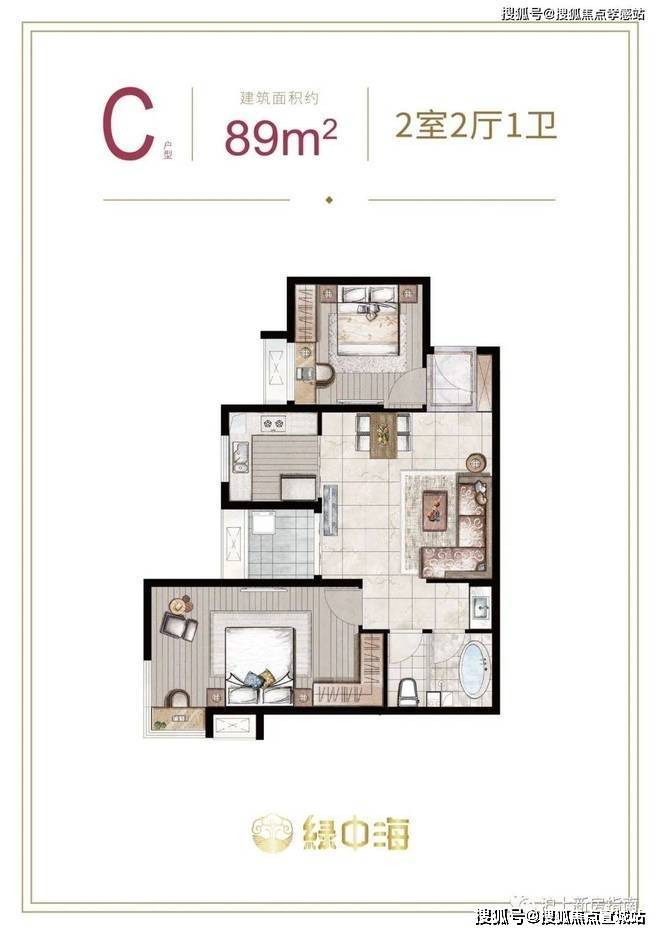 建面约87-89㎡2房2厅1卫