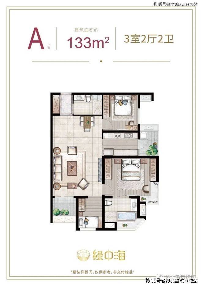 建面约133㎡3房2厅2卫