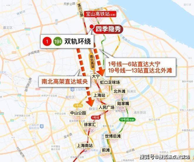 宝山站(在建)总开发规模约50万㎡,沪渝蓉铁路、沪苏通铁路二期及19号线(在建)等在此处汇集,预计年客流量约5400万。(信息来源:上海发布公众号)
