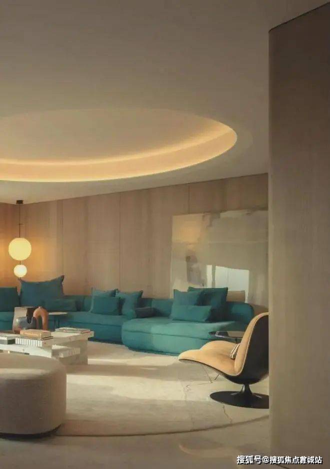 孩童天性好奇,因此在大客厅中采用大量曲线元素搭配优质棉麻材料,转而让空间越加丰富有趣,充分的勾起孩童的纯真天性。