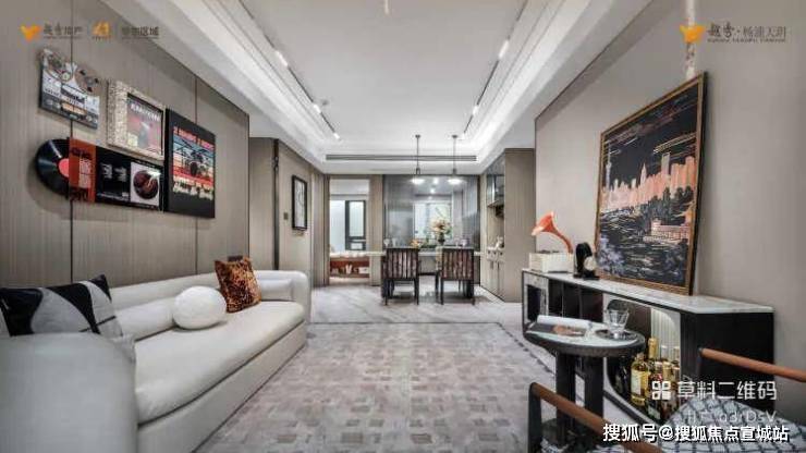全能玄关·全能收纳玄关选用严选产地巴西的雪山飞狐奢石,对标外滩华尔道夫酒店宽境客厅·敞阔客厅应用健康系统,极致工艺(圆弧形吊顶搭配无主灯设计、定制地砖减少拼缝)