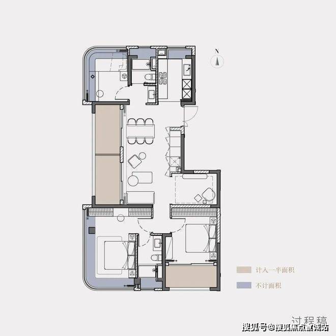 另外,直接提升了南次卧和主卧实用率更高,生活情境更丰富。