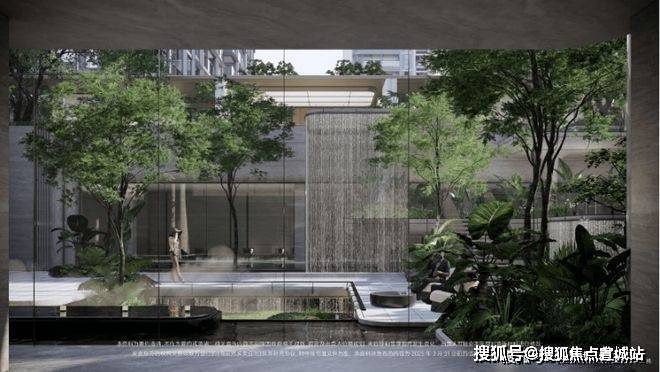 双轴线的设计,充分拓宽了视野面与观赏点位,环形回廊、精神游廊与下沉庭院通过立体景观平台相融,又创造出隔岸听泉的诗意场景。在会所、在架空层泛会所、在归家路上,每个重要生活触点,业主都能拥享独特景观和欣赏视野。