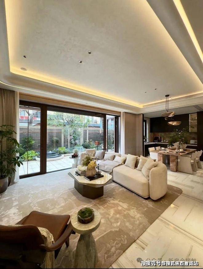 一楼面向庭院全景大玻璃落地窗真正意义上实现借景入室,是空间互融更是诗意盛放,客餐厅等空间集中于南侧于风景的相拥中宽享知味时光,至享生活浪漫。