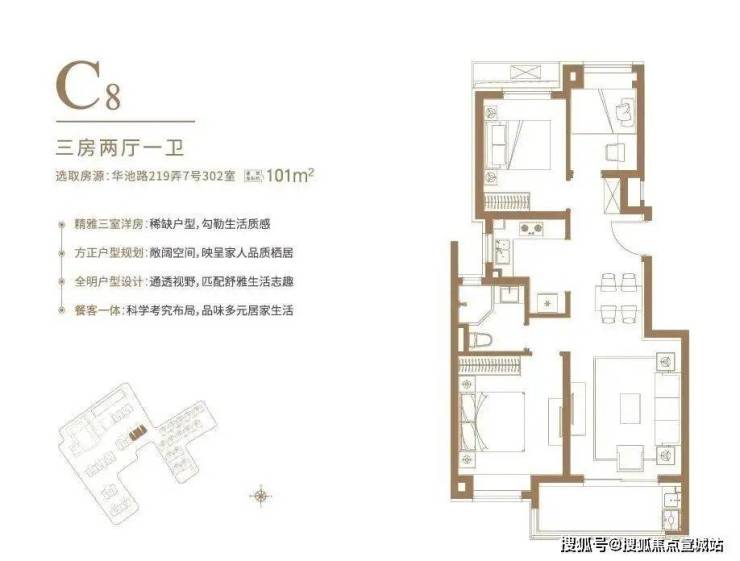 清一色100平左右户型,均价约10.4万/平,无需