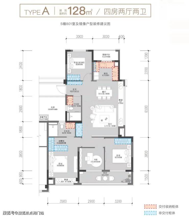 建面约128㎡进阶大四房,南向三开间+边厅巨幕飘窗设计,采光通风俱佳;约6.1米南向大阳台观景视野开阔,四季美景可尽收眼底;餐客厅一体设计,突出了家人的互动;北向灵动空间,则满足家庭成长所需.户户纯边套,让空间舒适的同时,又不乏私密享受.