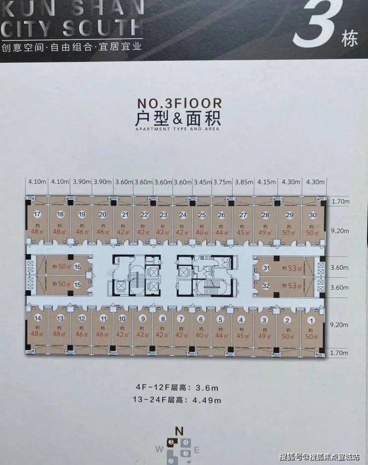 主力面积:42㎡-47㎡,3.6米平层13500/㎡,4.49米复试16500/㎡