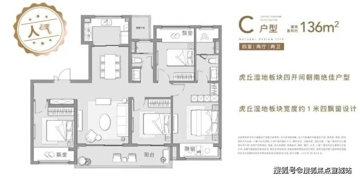 136㎡和143㎡户型分布于8幢小高层,均是四房四开间朝南,大横厅或者双联阳台可选,属于市场上主流的改善产品。值得一提的是,项目赠送的约一米进深大飘窗据说是板块内最宽飘窗。