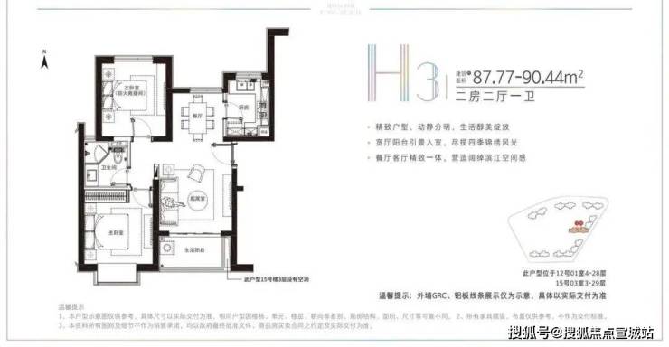建面约78-91.22平米的小户型,两房两厅一卫的格局,非常适合年轻刚需家庭上车。