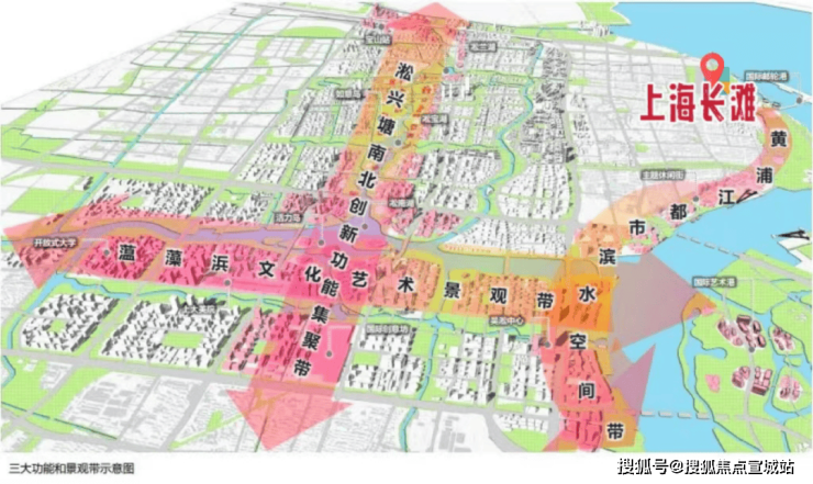 大吴淞地区整体的规划框架是要打造一个标志的“三江交汇”的上海之门,也就是三长江、黄浦江和蕰藻浜。这三江都是具有通航能力的河道,除了能够提供独特的景观价值之外,还能为产业提供很好的航运条件。
