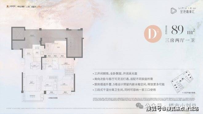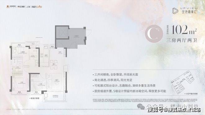 金地嘉峯汇售楼处电话:400--8862-33489㎡三房实现三开间朝南布局,LDKB餐客厨阳台一体化设计贯穿中轴,显著提升空间效率与家庭互动体验;102㎡户型增设独立玄关与L型飘窗,主卧套房兼顾私密与舒适;叠拼产品以双层空间、南北双露台等配置,为改善型家庭营造奢阔生活场景。金地嘉峯汇售楼处电话:400--8862-334