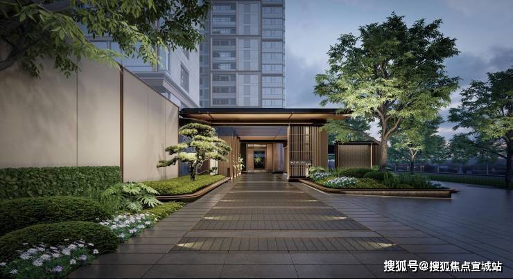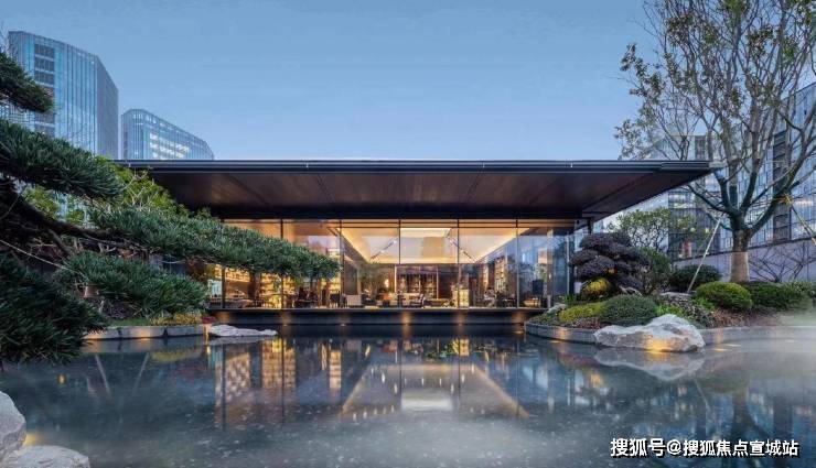 建筑风格:现代东方风格外立面,搭配江南园林景观示范区