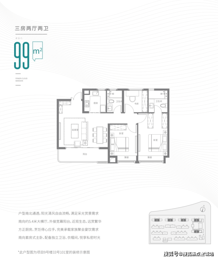 建面约99㎡3房2厅2卫▼