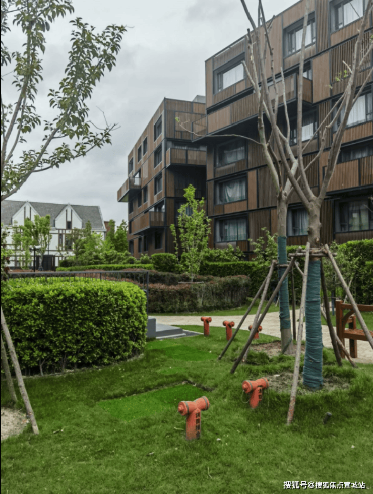 沁风雅苑一共由18栋6层的叠加组成,整体呈倾斜镜像状排列,外立面采用木色调,风格极为独特。