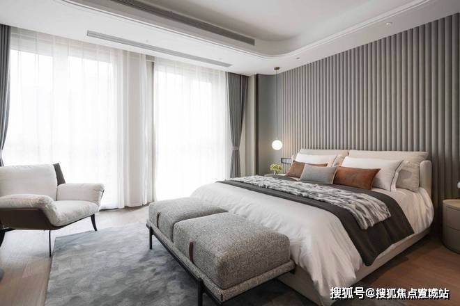 私密场域依旧保持静谧,黑白色基础上搭配了更多的色彩,例如深棕、浅紫等,艺术品的衬托深邃迷人,热络了家的氛围。